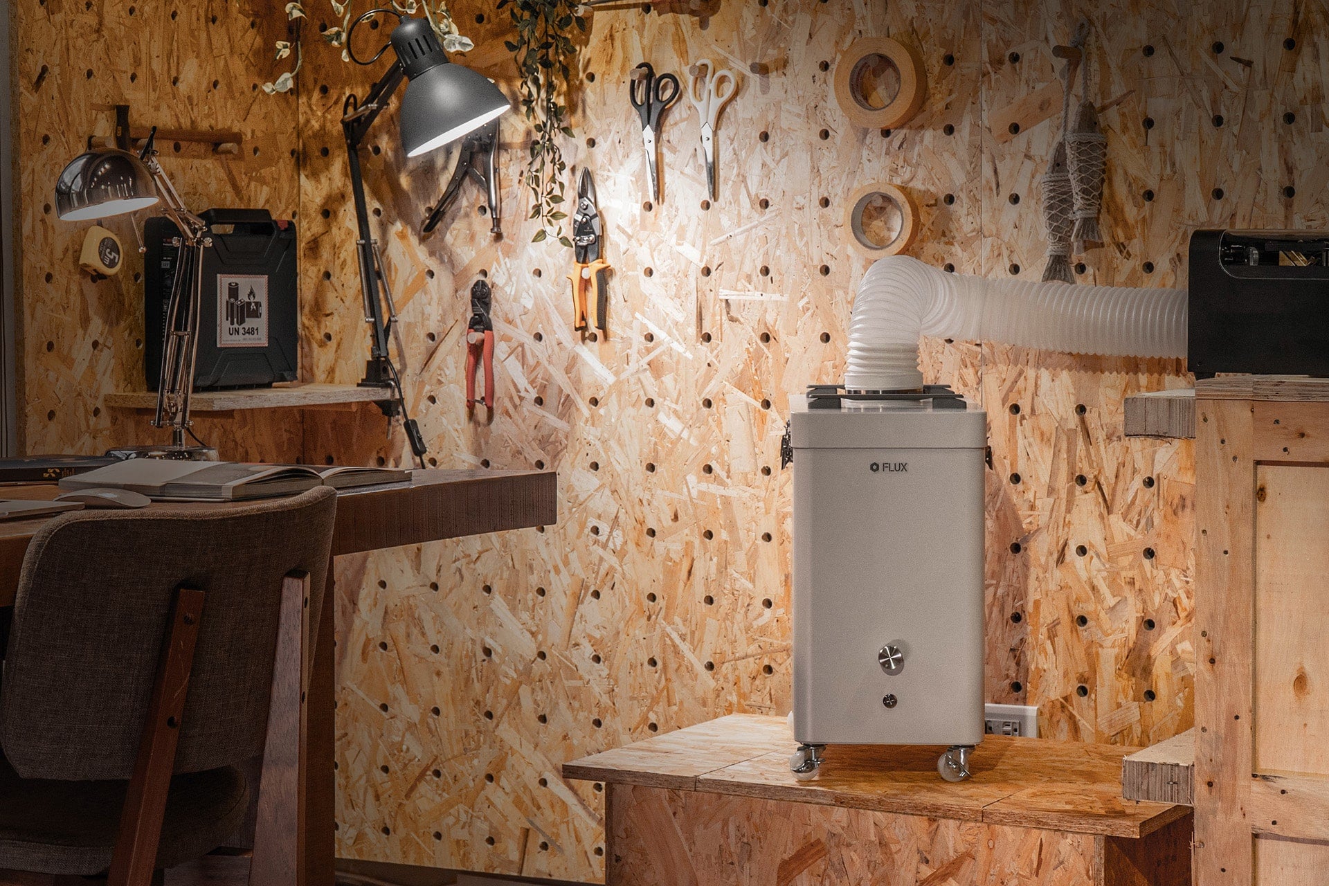 When connected to a FLUX laser cutter, this air filter can automatically adjust its volume control for optimal performance. A powerful brushless direct current motor (BLDC) fan ensures a quieter working environment.