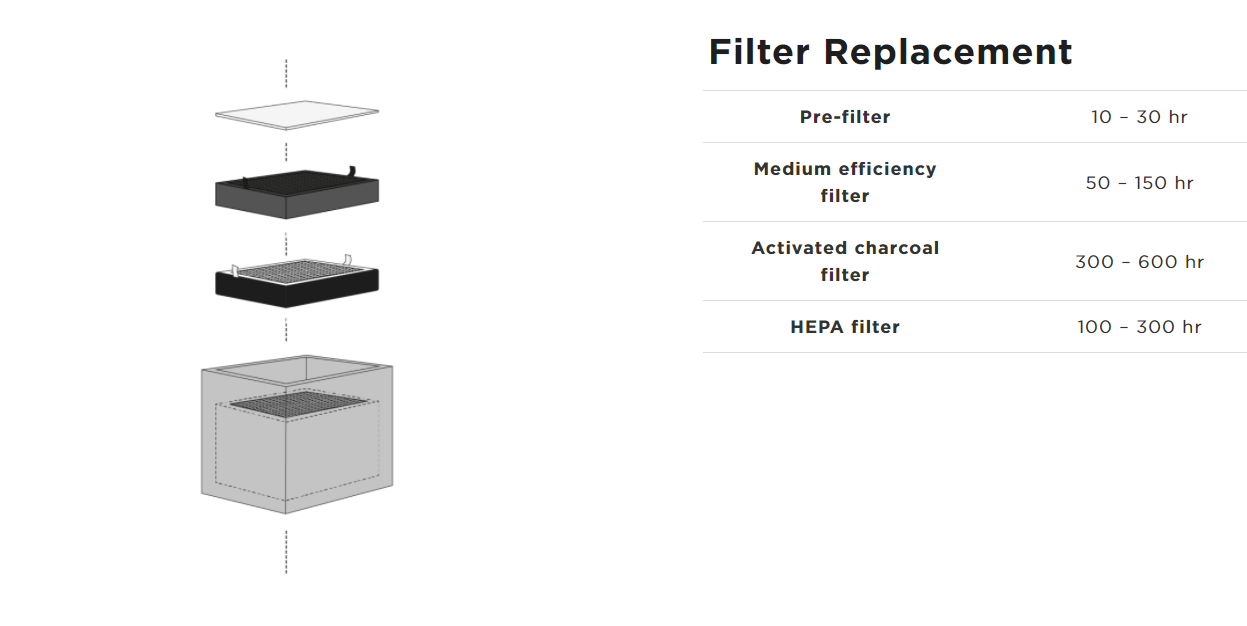 Filter Pre-Filter, H13 HEPA filter, activated carbon