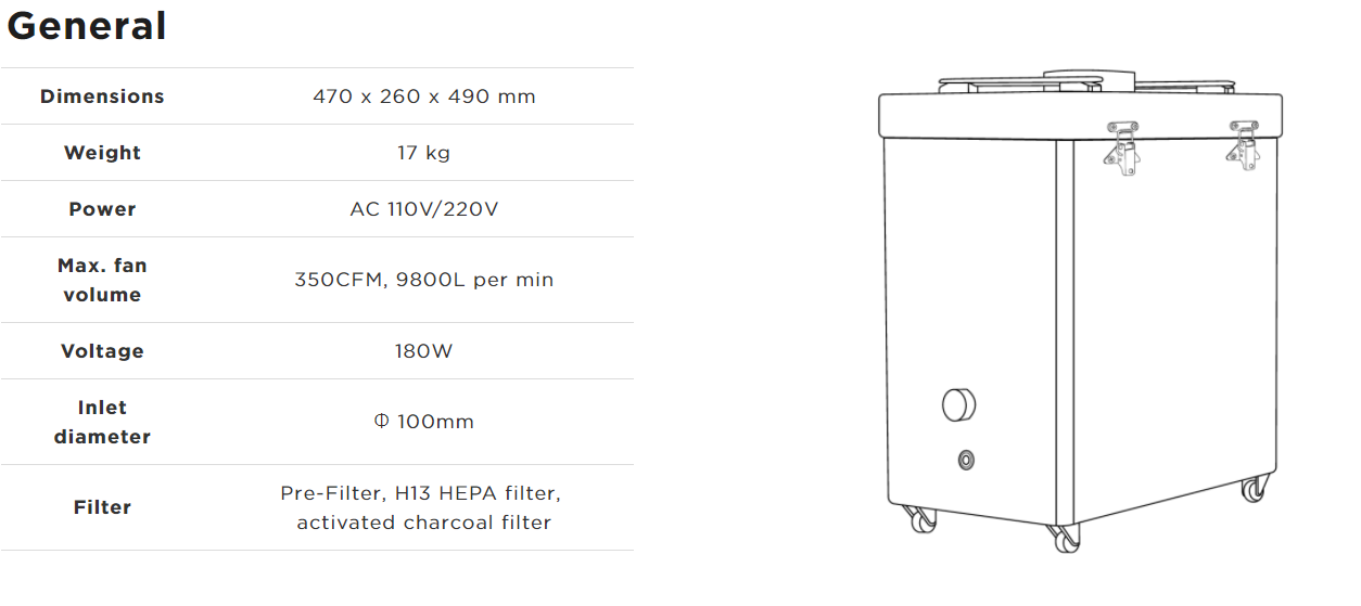 Lightweight, compact, and designed to keep your air clean for your creative journey. No need to extract externally.